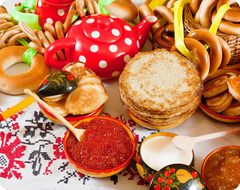 18 000 руб. / включены 100 порций блинов, которые готовятся на месте, начинки: мед и сгущенка, услуги повара, стилизованный русский стол /